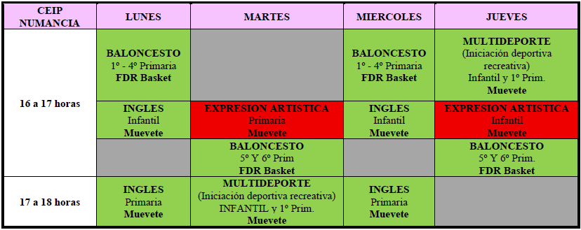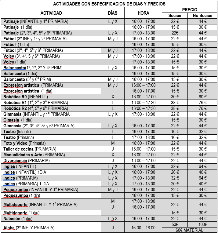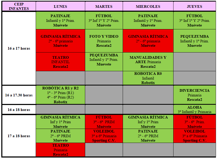 Se necesita un número mínimo de alumnos para que salgan adelante las extraescolares. Los grupos, horarios y lugares de las actividades que finalmente puedan llevarse a cabo, se comunicarán previamente.